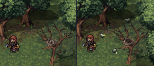 Forests are full of Herbs, various types of Mushrooms and Berries, along with Pine Cones and Acorns (in their respective forest variants) and Sticks. Sometimes there may be nests of forest birds, from which the mercenary can take Eggs. There are also Claw Traps scattered throughout the forests which a prudent mercenary should avoid, and a shrewd one should take for his own use.