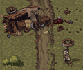 - Variation 13: A heavily damaged Cart with a container with Loot. The driver is brutally executed: hanged on a makeshift gallows from the wheel of his own Cart. There's Coal Chunk nearby.
