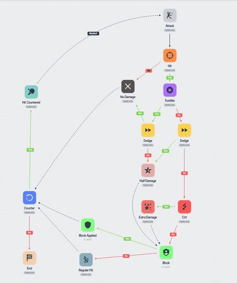 战斗模式期间,玩家角色使用回合会受到限制。每次只能执行一个行动。玩家每次行动之后,同一块地图的所有NPC都会行动一次,然后再由玩家角色行动。附近所有存在敌意的敌人全部击杀之后,战斗模式就会结束。由于战斗以回合为单位进行,要想跑得比敌人快,就必须依靠位移、突进技能。即便你想在地图边缘连续切换地图,战斗模式也不会因此而结束,因为附近多数存在敌意的敌人会跟着你进入另外一块地图。目前走出地城可以终止战斗模式,因为敌人不会跟你走出地城,但能跟着你往返地城的不同楼层。