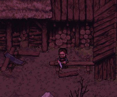 Dirk lives north of town market at Mannshire in his house. Most of the day he is doing carpentry outside his house.